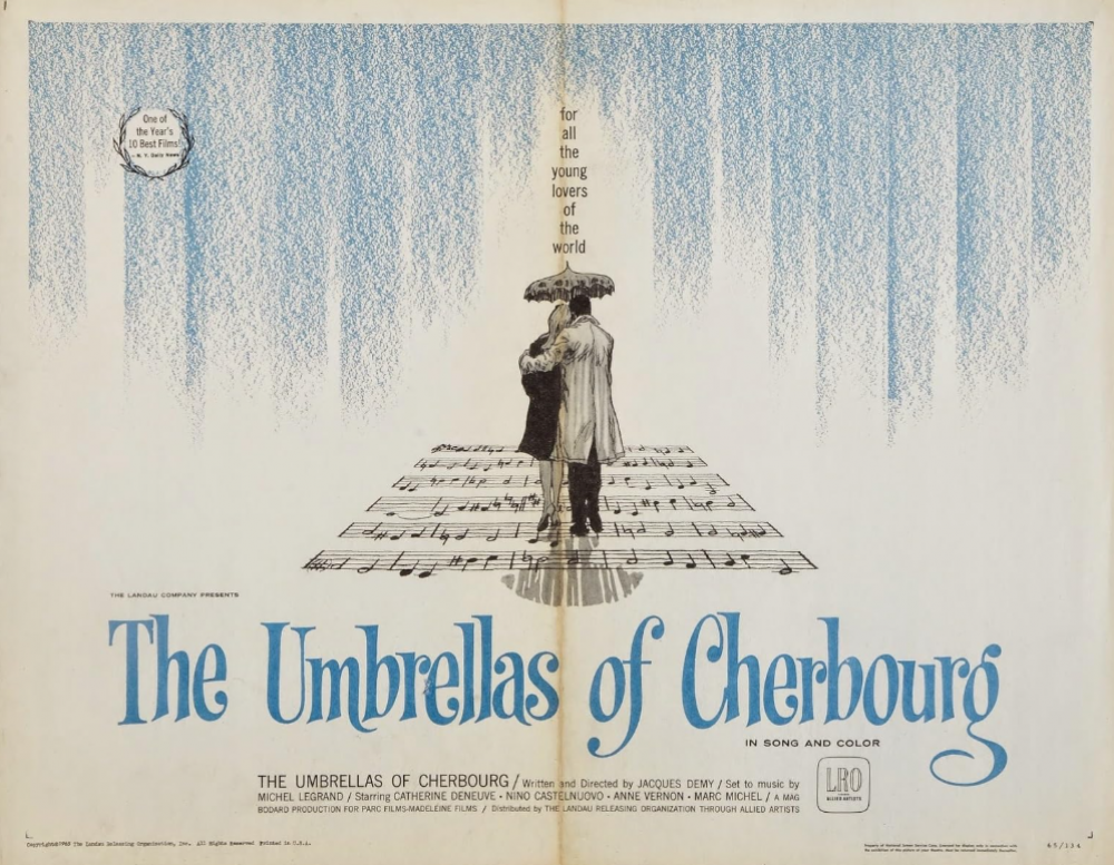 Cherbourgin sateenvarjot is Jacques Demyn ensimmäinen musiikkielokuva, ”laulettu elokuva”, ja se voitti mm. Cannesin festivaalien pääpalkinnon. Musiikin on säveltänyt Michel Legrand.