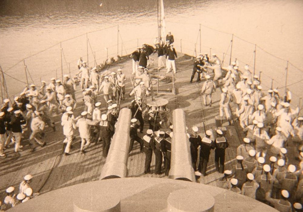 5) Hiljaisuus panssarilaivalla, odotusta: täytyykö aloittaa uusi taistelu lähestyvää laivuetta vastaan? Laivueen matruusit siirtyvät Potemkinin puolelle. ”VELJET!”